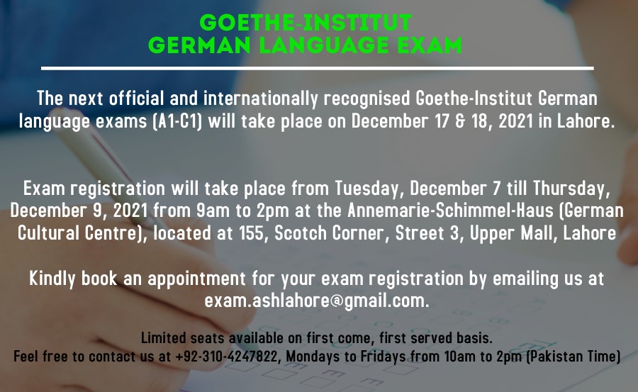 Dates for the Goethe-Institut German Language exam